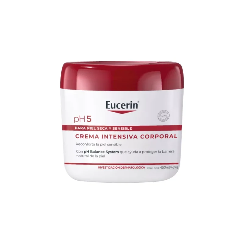 Eucerin pH5 Crema Intensiva ha sido especialmente formulada para hacer la piel más resistente ante los agentes externos que resecan y la sensibilizan. Cuenta con la tecnología pH Balance system que contiene pH5 Buffer-Citrato que ayuda a restaurar el pH natural de la piel.